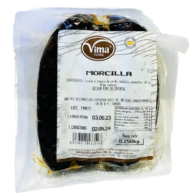 Descubre la auténtica tradición en cada bocado con nuestra morcilla de 250 g, elaborada con ingredientes de alta calidad y especias que realzan su sabor único. Su textura suave y jugosa, junto con el toque sutil de cebolla y pimienta, la convierte en la elección perfecta para asar, freír o añadir a tus guisos favoritos. Ideal para entradas, como acompañante o protagonista de recetas tradicionales con un giro gourmet. Con cada porción, te llevas a la mesa la riqueza de nuestras raíces y el placer de lo bien hecho. ¡Buen provecho!