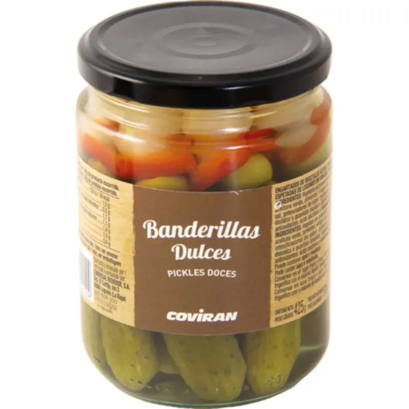 Disfruta de un bocado lleno de color, sabor y tradición con las Banderillas Dulces, una combinación irresistible de vegetales encurtidos con un toque suave y dulce que las hace únicas. Son el complemento ideal para tus picoteos, tapas y reuniones familiares.